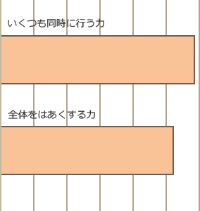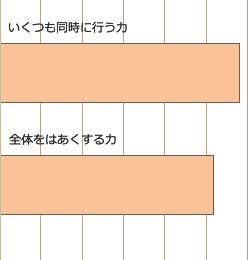「いくつも同時に行う力」や「全体を把握する力」の強いお子さまは、一見難しい複数の単元の複合問題も苦手意識を持たずに取り組めます。一方、飽きっぽく同じことを長く続けることが苦手な傾向があります。